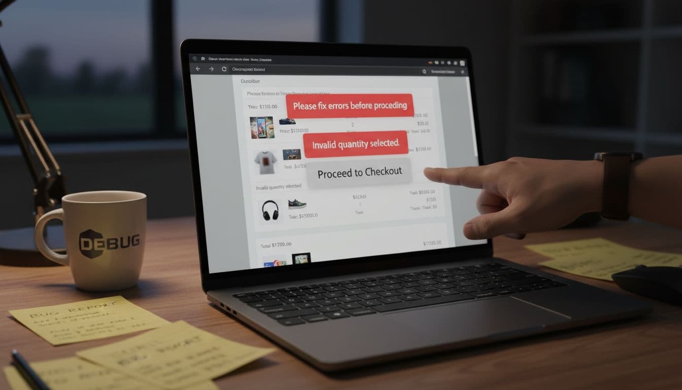 What to check: Required form fields, invalid formats, address validation, payment errors, and inline hints.